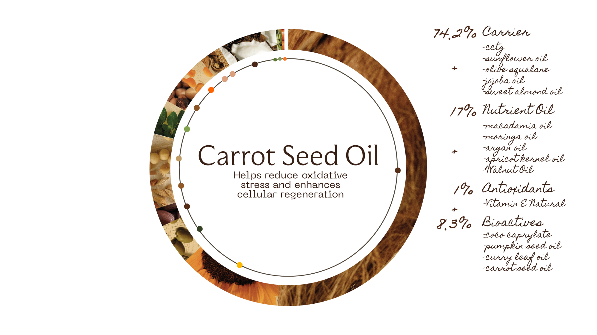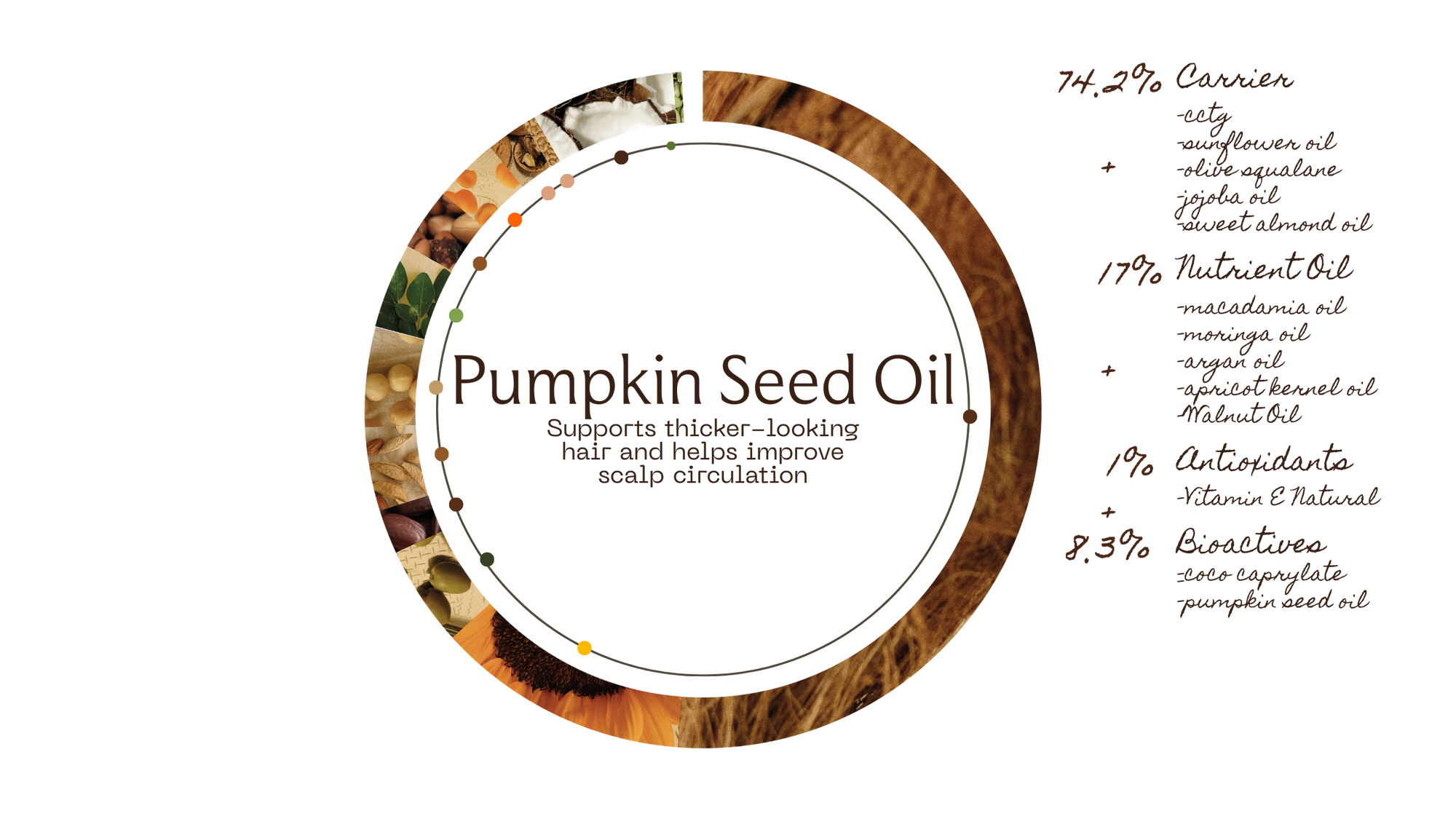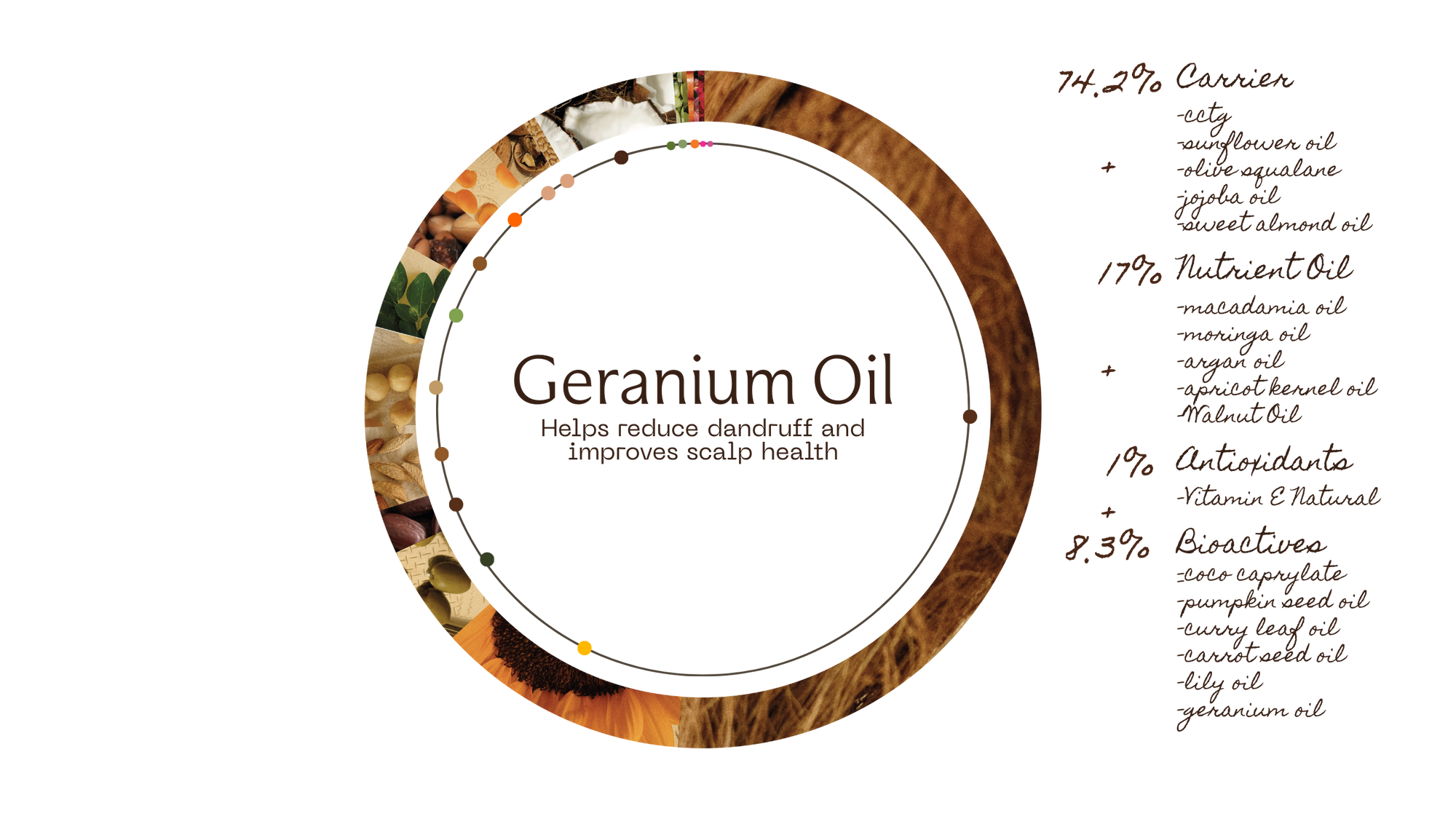 Illustration of curry leaf oil, moringa oil, walnut oil, and sweet almond oil with their respective benefits.